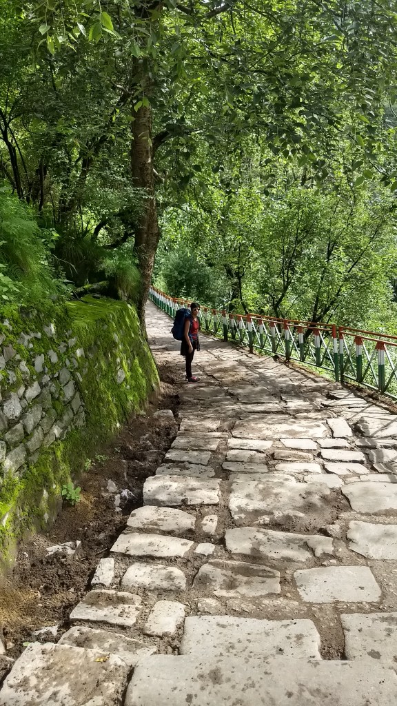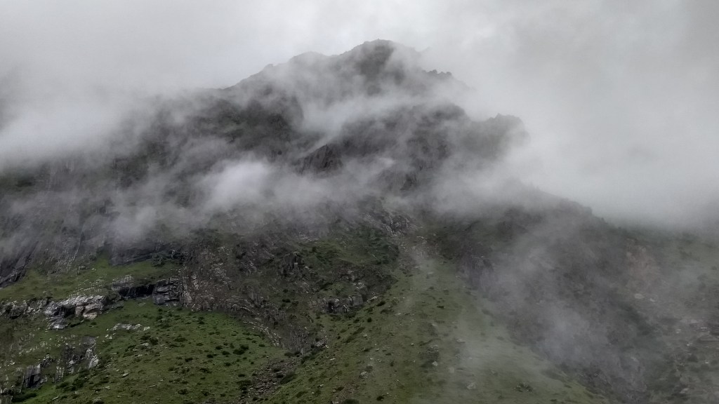 Today as well, we started quite early. Had breakfast and we were off towards the Gurudwara. The initial 15-20mins path was the same as the previous day after which this forks in the opposite direction. As usual, I had no clue what I had signed up for. This was a 6-7km trek up to the Gurudwara. The journey had shacks every .5km or so. An interesting thing to note was that the higher you get, the price of the same items got costlier. Something that I saw for the first time in my life. Anyway, the journey that people usually complete in 1-2 hours took me almost 4-5 hours to climb. It was only 6 km but it was a steep climb. It was drizzling on and off throughout and it was quite chilly as we were getting higher. The Gurudwara is a pilgrimage point for Sikhs. There were quite a lot of them climbing up at a good pace all the while shouting slogans, “Jo bole so nihal, Sat sri akaal” and some other things where one chants it out and the others say, “Waheguru”. We joined along too, as we now knew when to say some of these.