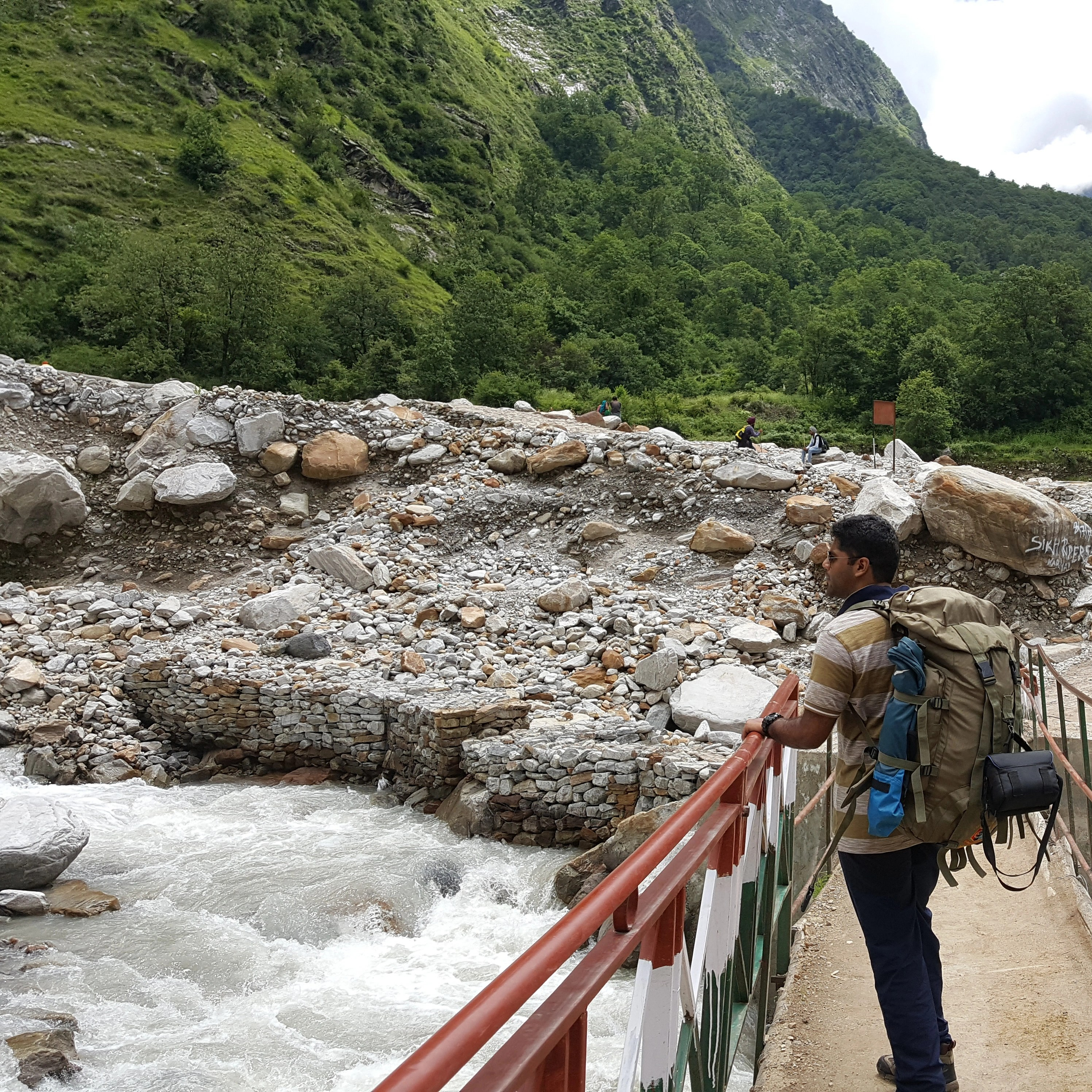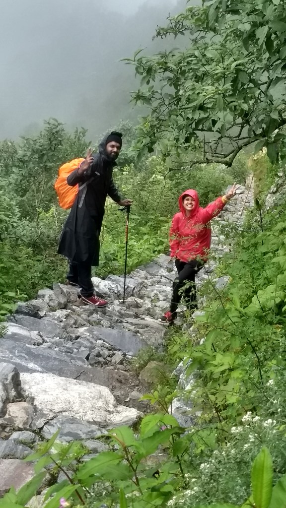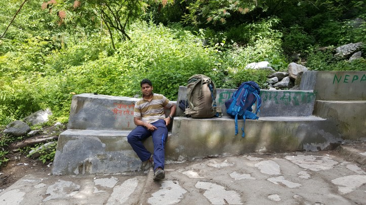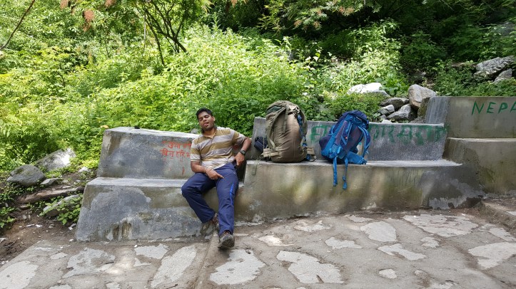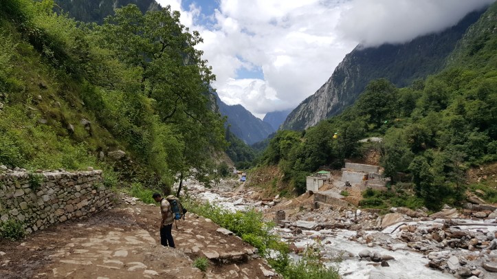 After a long, almost whole day’s travel, we reached Joshimath. Our actual drop point was a short distance away from Joshimath at a place called Govind Ghat. I vaguely remember this being right on the main road with not much happening. We then had to walk down a path to get to the starting point of the easy -14km long Govind Ghat to Ghangharia walk(?) No, hike(?) No, trek! At least it was for me. Details will follow. You still remember how I packed, right? Keep that in mind. As we started walking towards the starting point of this ‘Trek’, there were a lot of shops for food, Maggi, tea, and also some gear on rent. There were also a bunch of locals with mules. These mules were used to carry supplies, luggage, or even people from Joshimath to Ghagharia. As we walked through this mini market, quite a few locals walked up and asked if we wanted to hire a mule to go up. We declined. They then started asking us to hire one mule or get our bags carried with some other tourists’ luggage. We declined again. At this point, one of the locals looked at me and said, “You won’t find any mules once you start off. You better offload at least your bags here.” Declined again. “All right, go on. You’ll realize what I’m talking about on your way up.” The cocky, young, noob that I was, I didn’t care about any of this, and Debby and I started off on the trail.