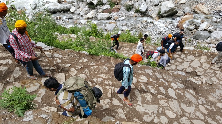 Towards the end, it got quite bad. A group of sardars that were crossing us and heading towards Ghangharia noticed the donkey(me) and handed me a big stick/pole for support. This did help a little. But I still needed those breaks every few steps. At one point, In the last quarter of the journey, I started blacking out if I took a few steps with my bag. I did not tell Debby this. I honestly didn’t even know what was happening. I knew I had to stop. Once I did, I would feel fine, and my vision came back to normal only until I took another step or two. My vision blacked out again. Note that I did not faint here, but I think I would have if I’d continued on. This is when Debby was nice enough to exchange bags (Poor thing. She had to carry that elephant bag of mine) while I felt super relieved. It was much easier to walk now and no more blacking out or anything. I was still getting tired though and needed a couple of stops.