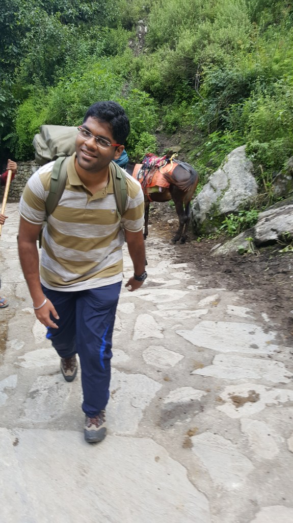I then spent some time in Delhi with my family and some friends. Before leaving for Bangalore, Debby and I went to a resto-pub in Hauz Khas. Weirdly, she was carrying an umbrella. This was super normal for Uttarakhand but not so much for Delhi. I was wondering why. While at the restaurant, she casually picked this ‘umbrella’ out of her bag and handed it to me. Only then I realized that it was a trekking pole! The Donkey’s reward for all of that effort. I’ve used that on almost all my treks since then. Luckily, not a donkey in any of those!